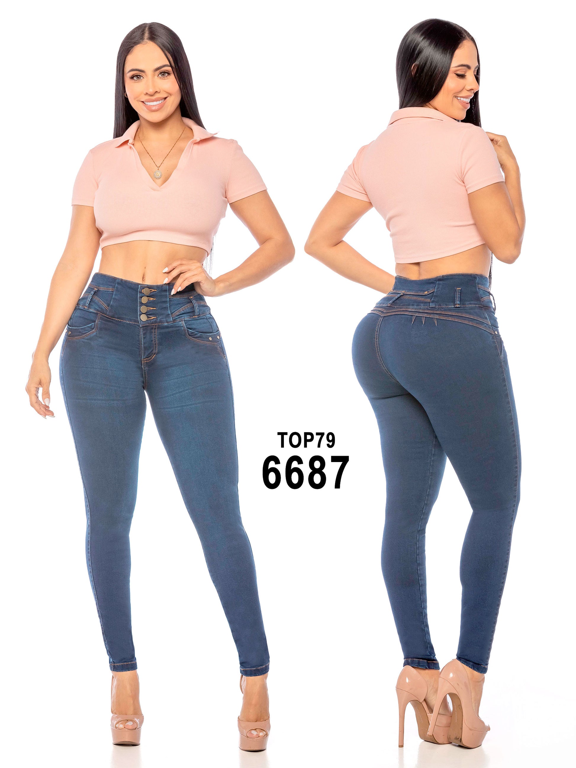 Si buscas un jean que realce tu figura y te brinde máximo confort, el Jean Levantacola Ref. 6687 es la elección perfecta. Confeccionado en 100% Denim Stretch, este diseño se ajusta a tu cuerpo de forma ideal, resaltando tus curvas sin sacrificar la comodidad.