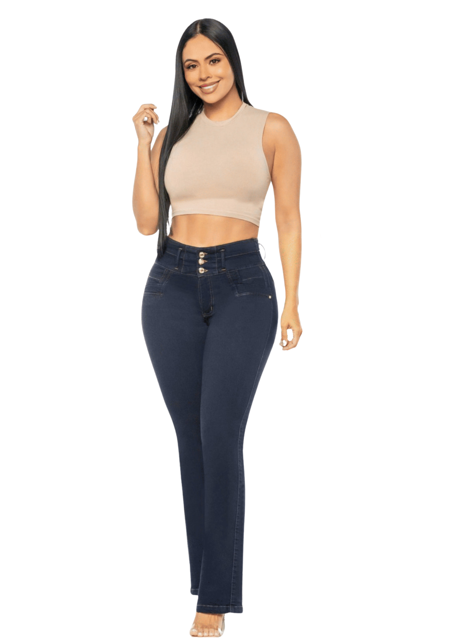 Diseñado con pretina ancha de 3 botones que estiliza la cintura y realza tus curvas. Su tono azul oscuro y detalles de costura crean un look moderno y sofisticado.